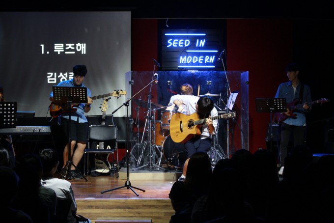 5월25일(목) 서울캠퍼스 SEED 공연장에세는 제7회 자작곡 경연대회 본선 경연이 펼쳐 졌습니다. 예선을 통해 올라온 4개의 자작곡들이 밴드 편곡을 통해 선보인 본선 무대!