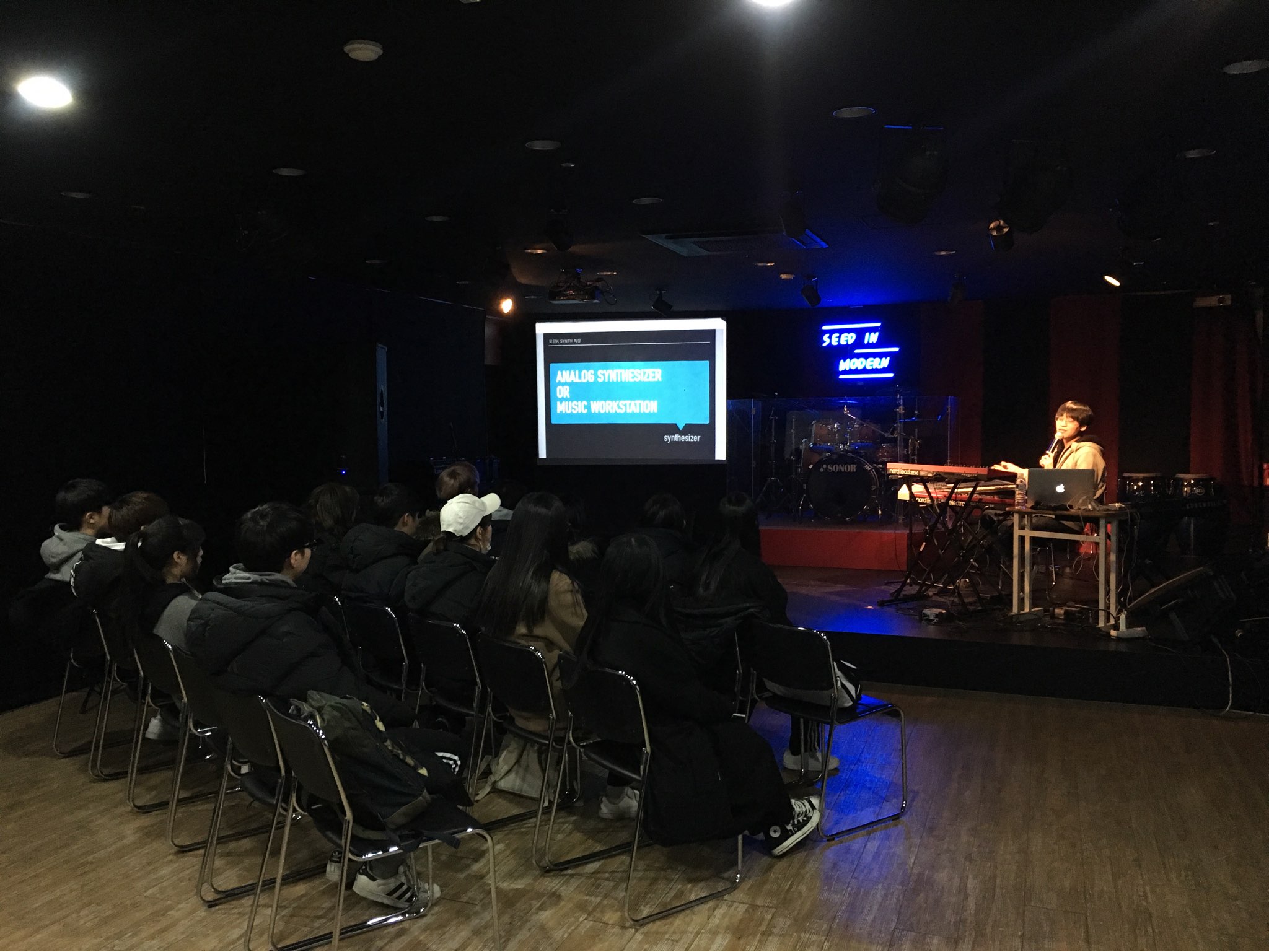 학생들이 직접 무대위에서 신디사이저를 연주해보고,