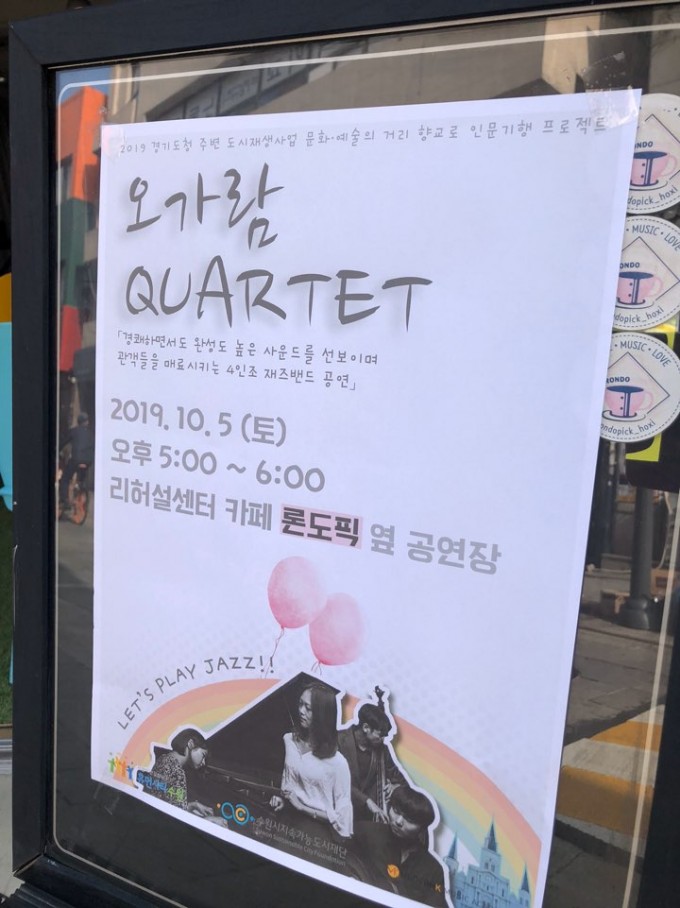 10월 5일 토요일 모던k 수원캠퍼스 리허설센터 카페 론도픽 옆 공연장에서