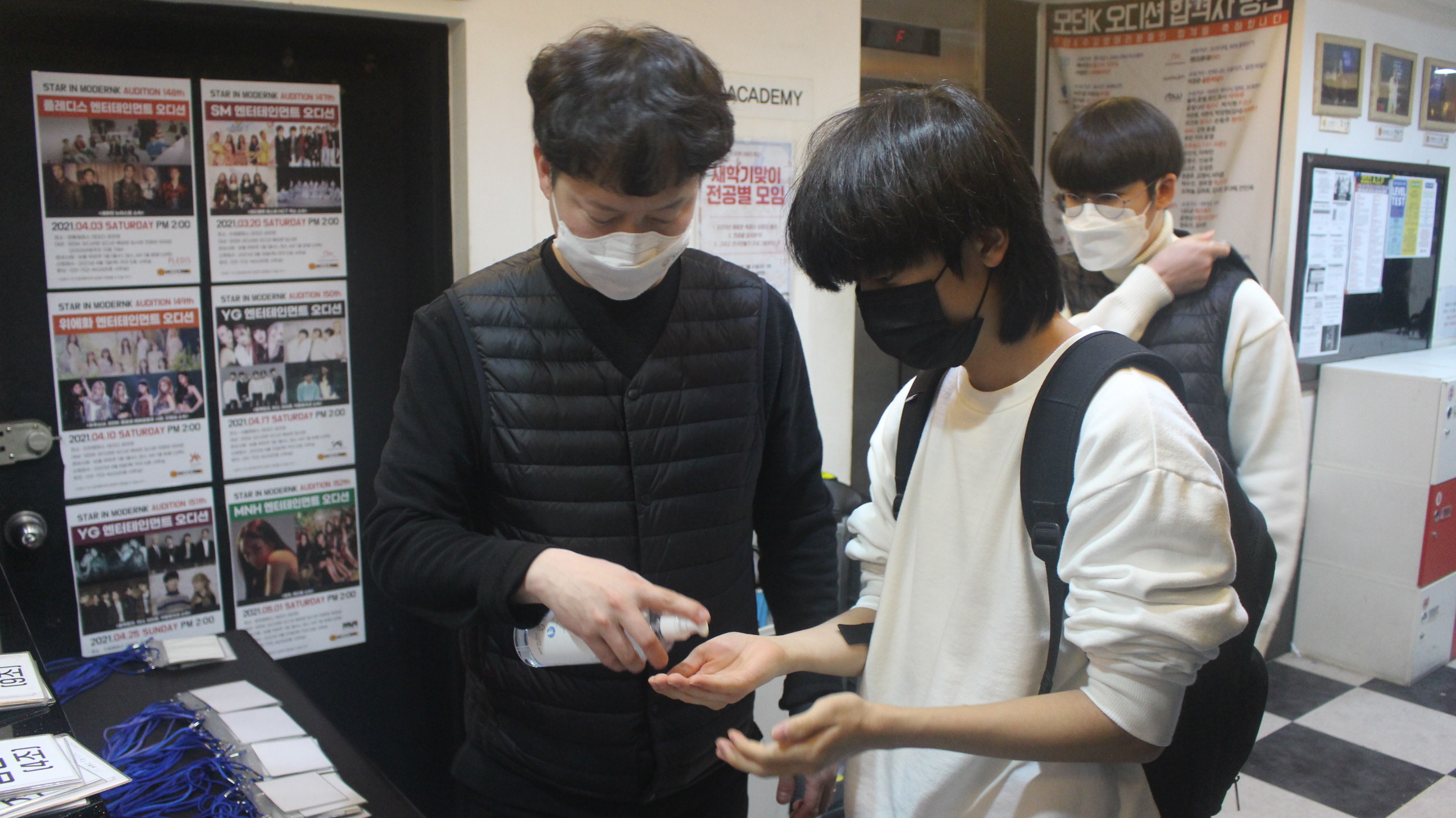 저희 모던K에서는 모든 직원이 직접 출입 인원에 대해 QR체크, 열체크, 문진표 작성, 손 소독을 진행하고 사용 공간의 시설 소독, 마스크 필수 착용 강조 및 방역 관리가 철저하게 이루어지고 있습니다.