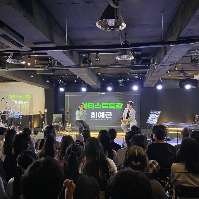 학생들의 멋진 오프닝 무대를 시작으로 감성적인 최예근의 자작곡 무대 후 학생들과 함께하는 Q&A 시간까지! 이후 모던K 수강생으로 이루어진 밴드 학생들과 최예근의 콜라보 무대로 이날 특강의 마지막을 화려하게 장식했습니다.