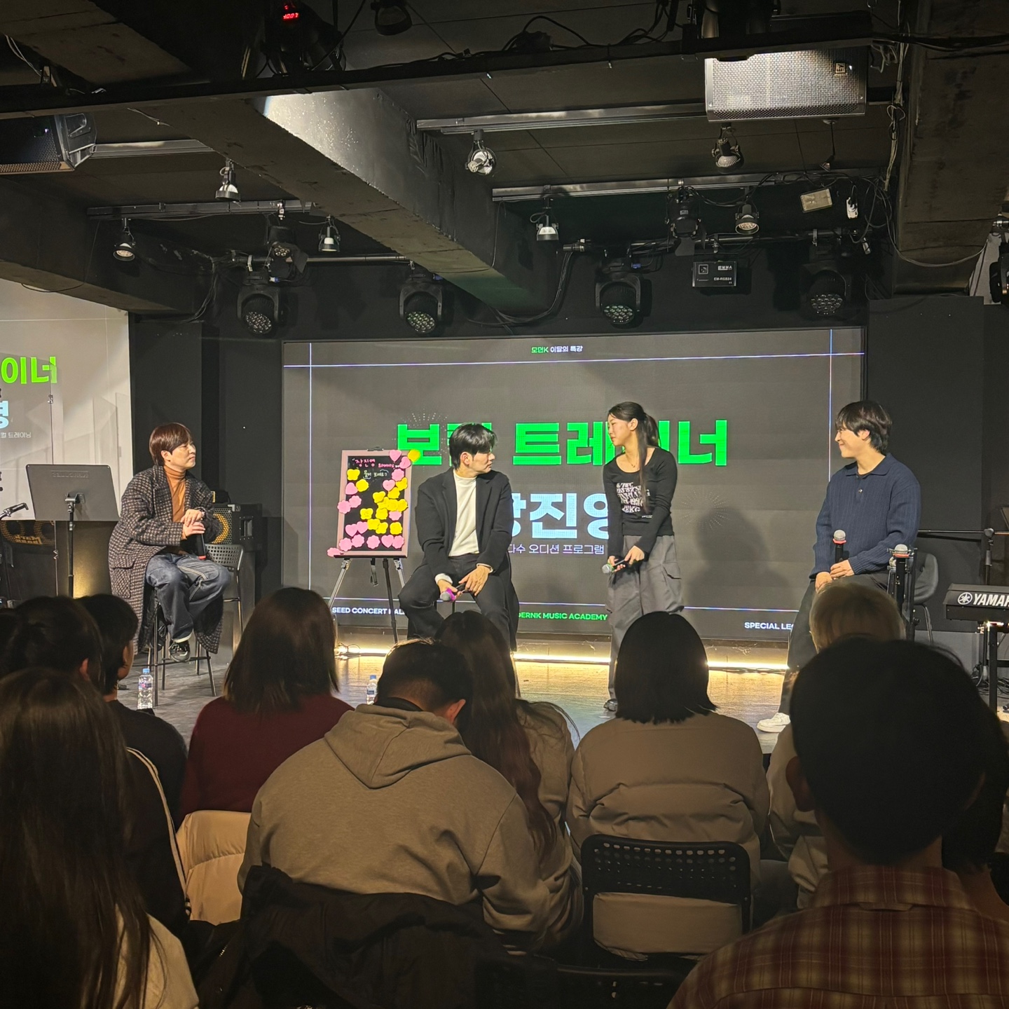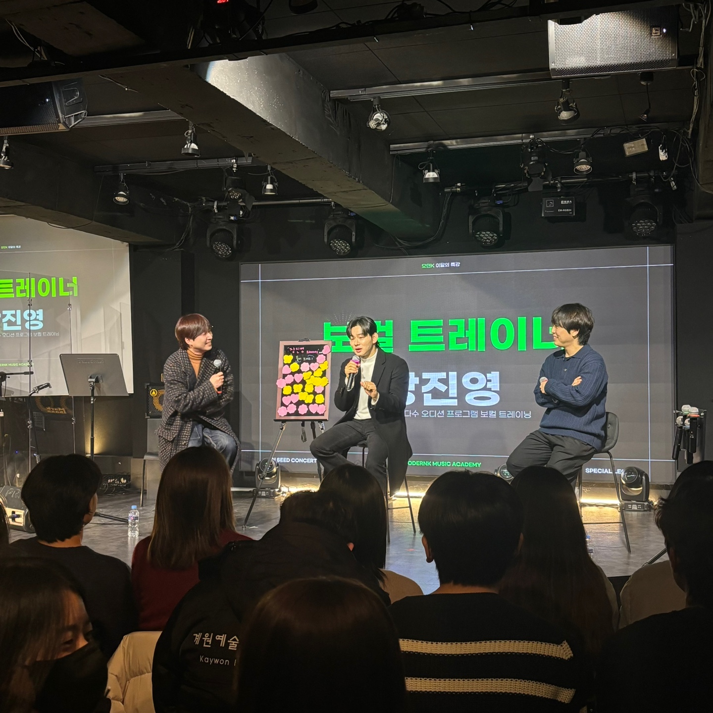 이어지는 장진영님 특강에선 학생들의 질문에 시원시원한 답변과 보컬 티칭까지 해주신 덕분에 아주 유익하고 재미있는 시간을 보낼 수 있었습니다:)