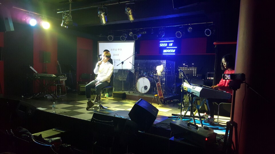 모던K 2016년 1월 뮤지션 특강으로 가수 김우주의 공연이 열렸고, 보컬 염승윤 학생이 오프닝 무대에 올랐습니다^^