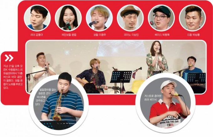 보컬 윤립 씨와 이창우 씨도 김씨의 제자다. 원래 아이돌 가수를 꿈꿨던 윤씨는 집안의 반대로 보컬로 전향하고 김씨 밑에서 음악을 공부했다. 윤씨는 “사촌오빠도 장애가 있다”며 “대표님께서 밴드 멤버를 구성할 때 바로 하겠다고 했다”고 말했다.