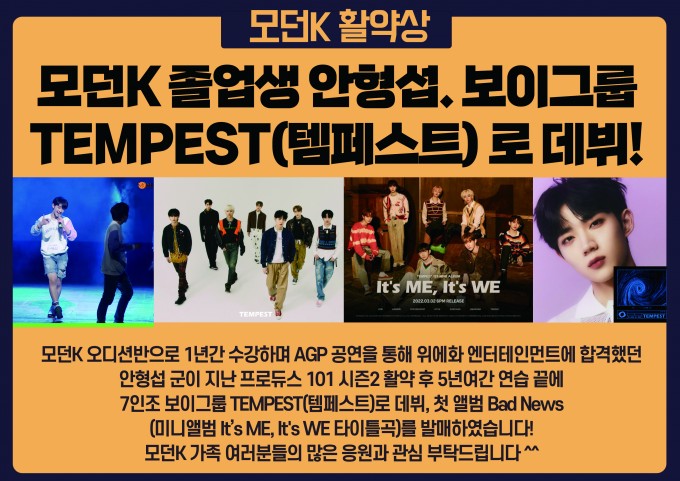 모던K 졸업생 안형섭 보이그룹 TEMPEST(템페스트) 로 데뷔!