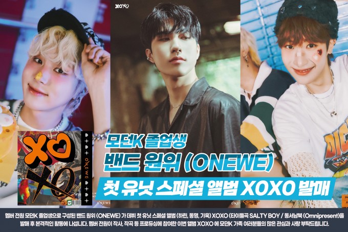 멤버 전원 모던K 졸업생으로 구성된 밴드 원위 (ONEWE) 가 데뷔 첫 유닛 스페셜 앨범 (하린, 동명, 기욱) XOXO (타이틀곡 SALTY BOY / 동서남북 (Omnipresent) ) 을 발매 후 본격적인 활동에 나섭니다. 멤버 전원이 작사, 작곡 등 프로듀싱에 참여한 이번 앨범 XOXO 에 모던K 가족 여러분들의 많은 관심과 사랑 부탁드립니다.