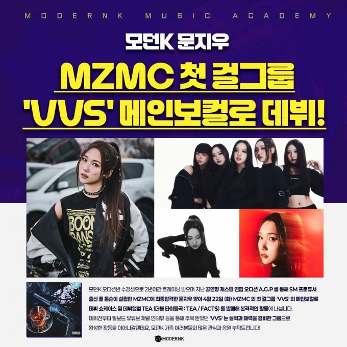 모던K 문지우 MZMC 첫 걸그룹 'VVS' 메인보컬로 데뷔!