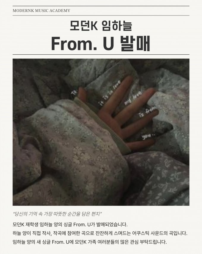 류우현, 임하늘 양과 이산 군의 앨범에 모던K 가족 여러분들의 많은 관심 부탁드립니다.