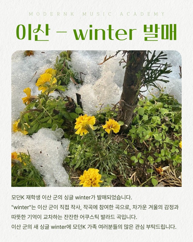 모던K 수강생 류우현, 임하늘양과 이산 군이 각각의 싱글앨범을 발매하였습니다.