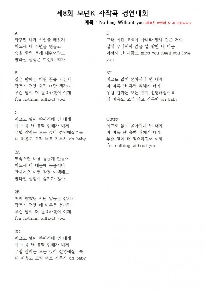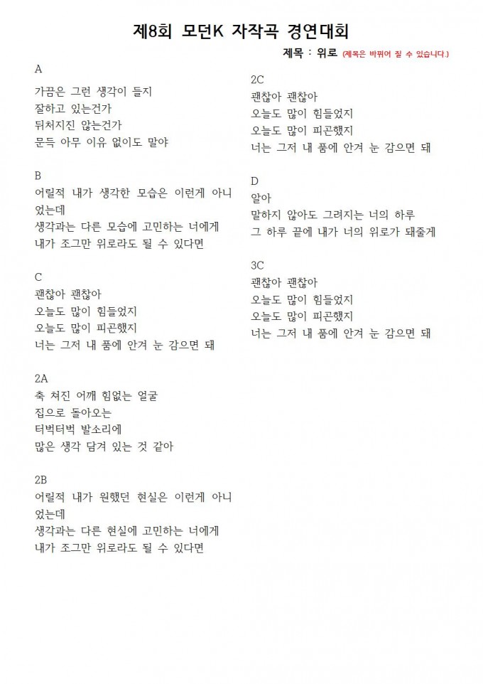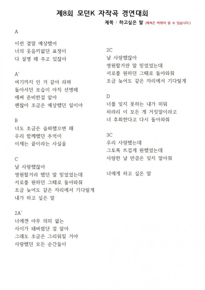 4. 예선에서 선택한 가사는 최종 결선까지 적용(수정 불가)
