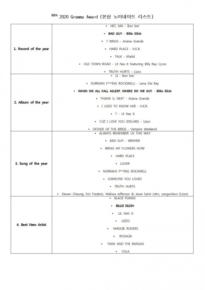 2020년 3월 모던K 아티스트 영상수업 2주차 - 그래미 어워드 특집 2주차