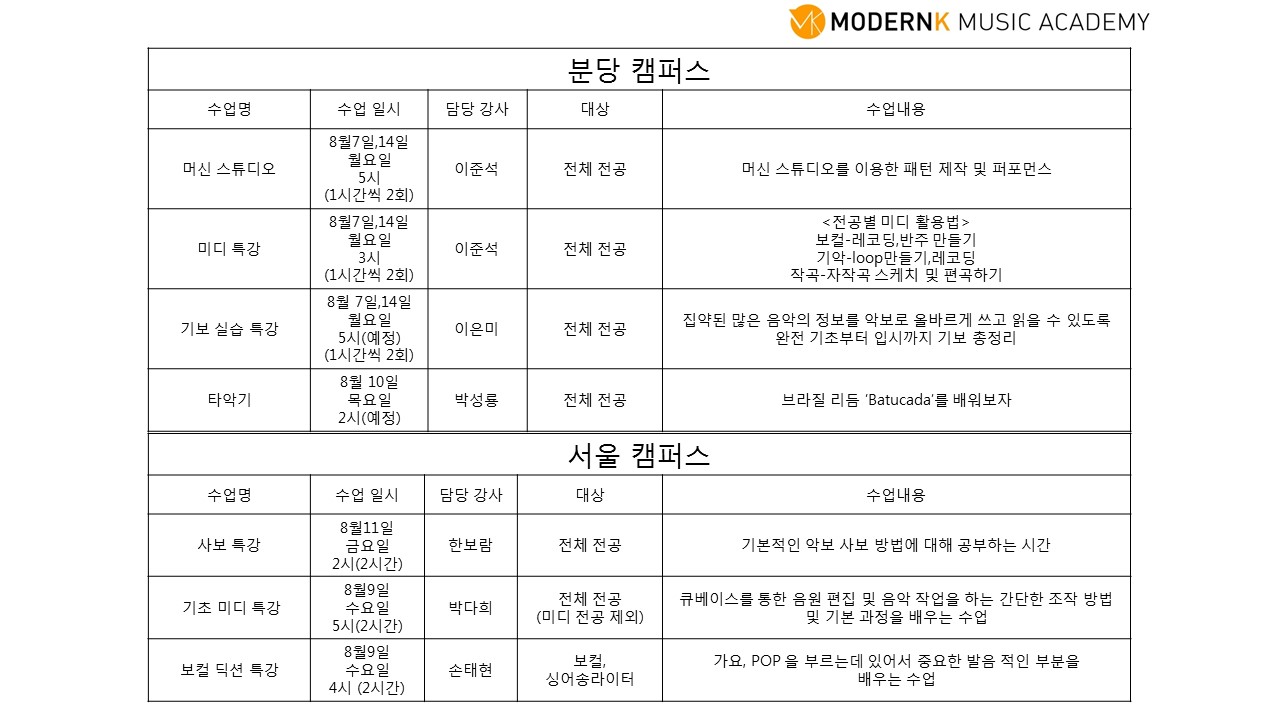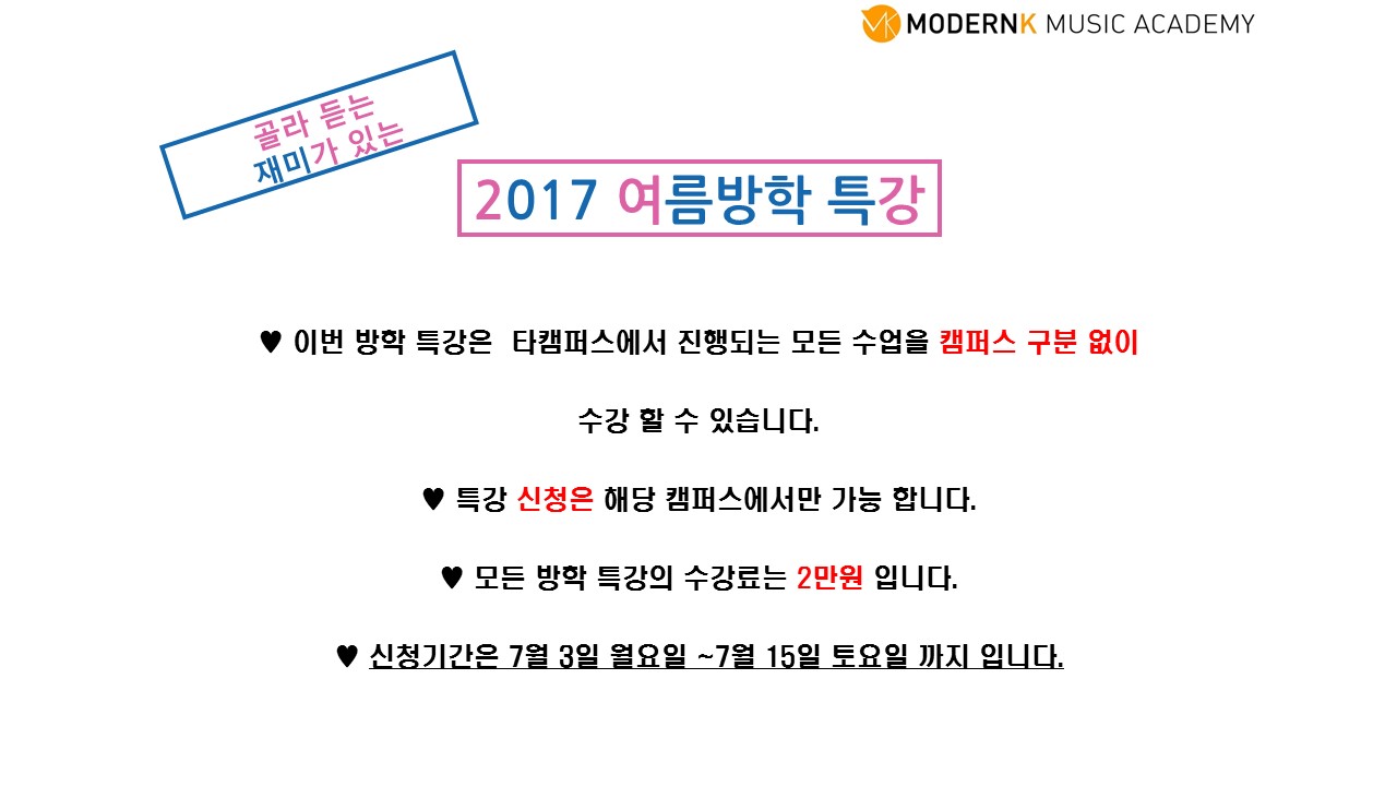 2017년 모던K 여름방학 특강안내