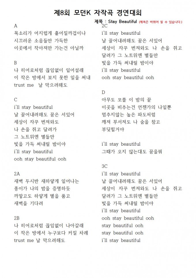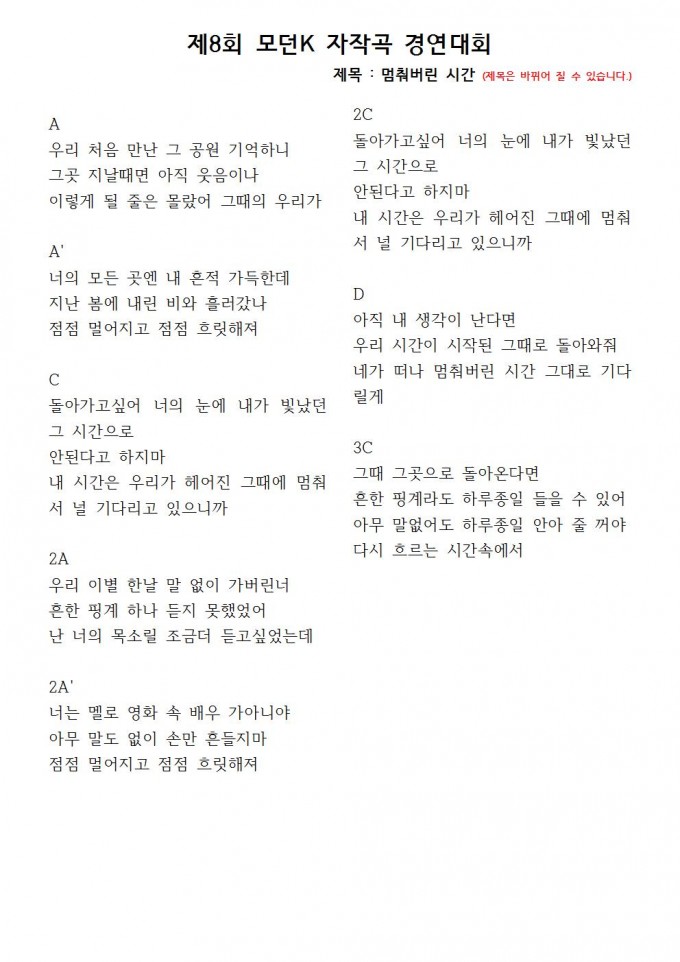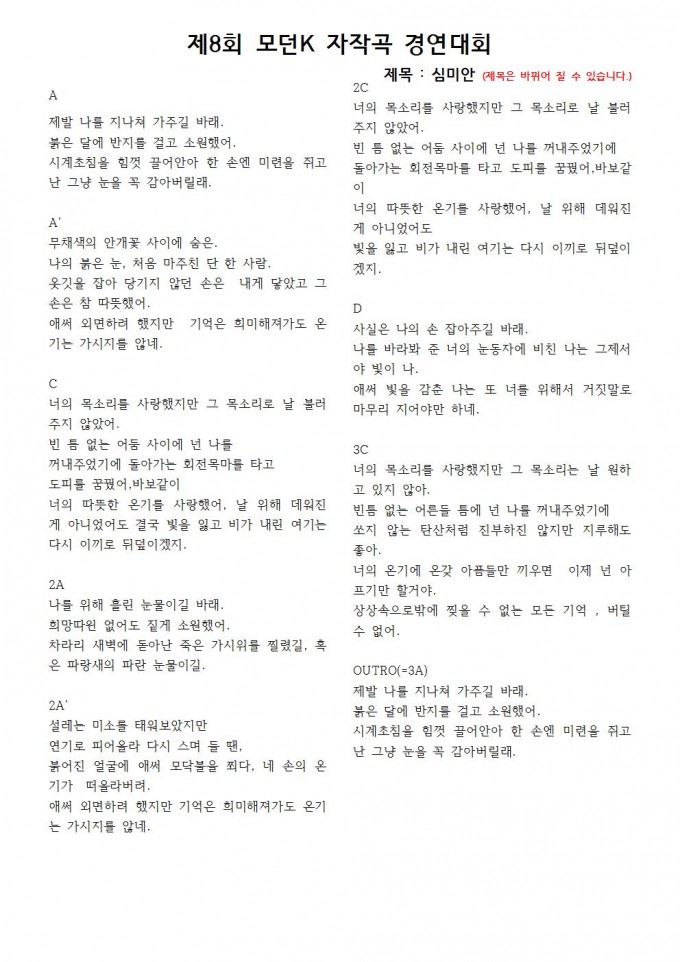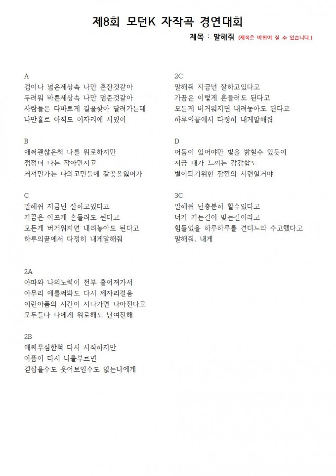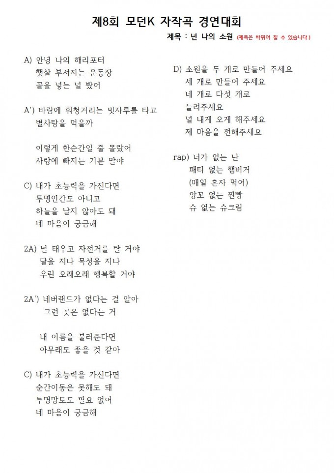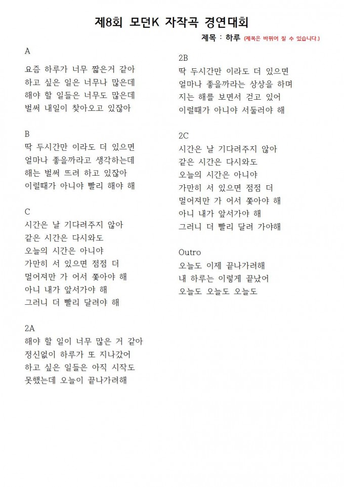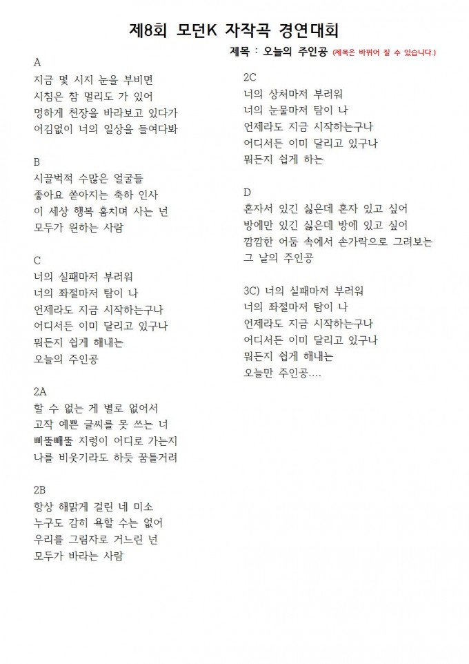 4. 예선에서 선택한 가사는 최종 결선까지 적용(수정 불가)
