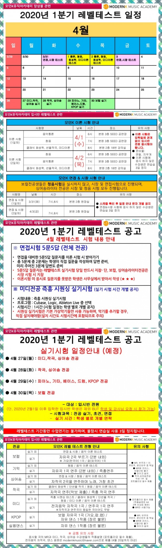 2020년 1분기 레벨테스트 안내