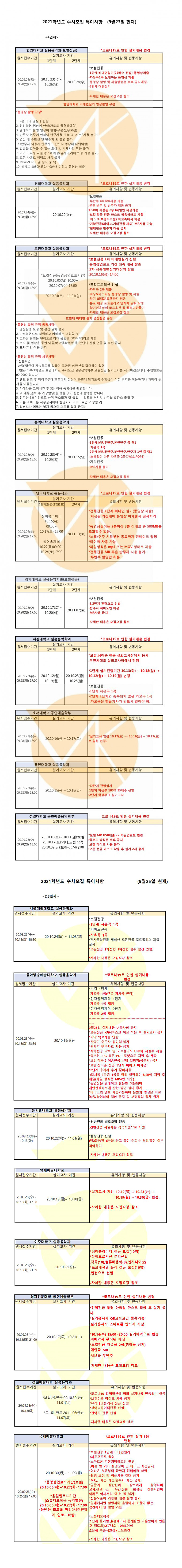 2021학년도 국내실용음악대학 수시 변동 및 특이사항(2020년 9월 28일 Ver.)