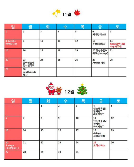 11월,12월 오디션반 워크샵 일정