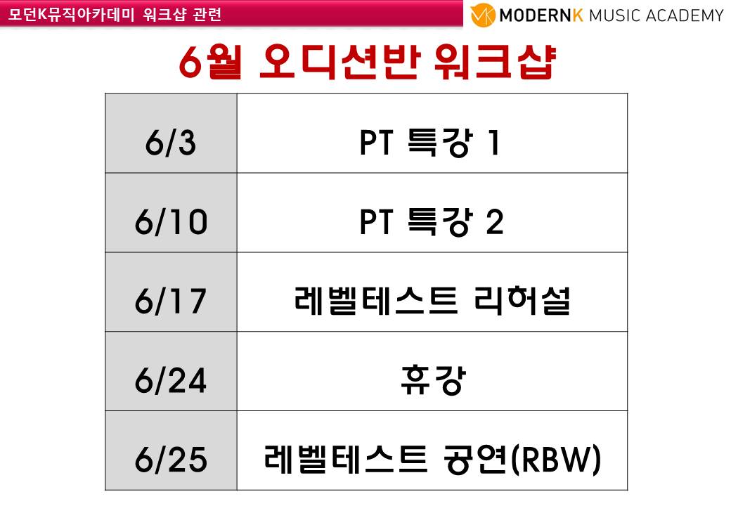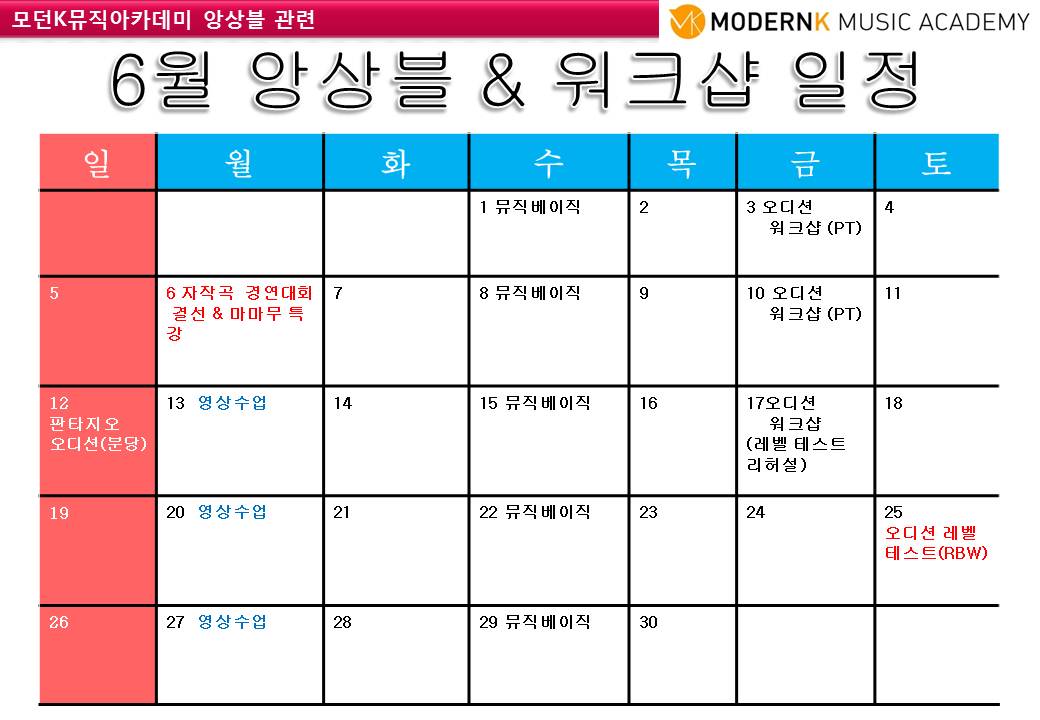 6월 오디션반 수업&행사 안내
