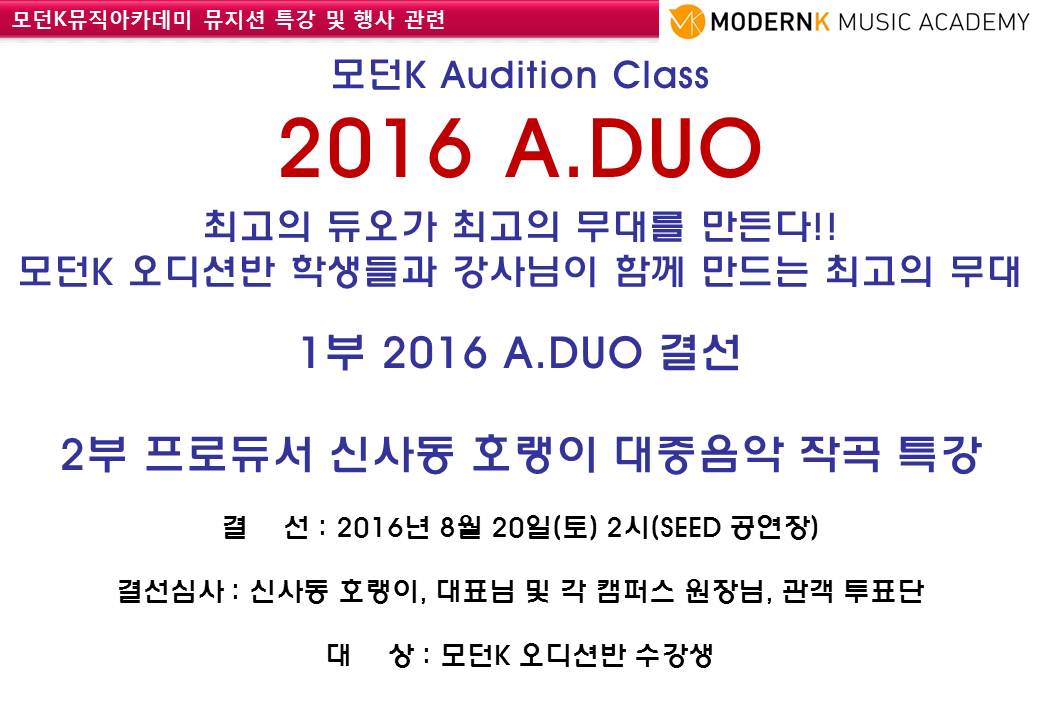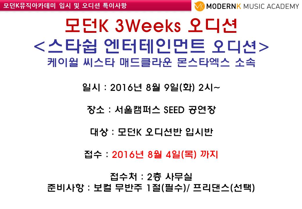 8월 오디션반 수업&행사 안내