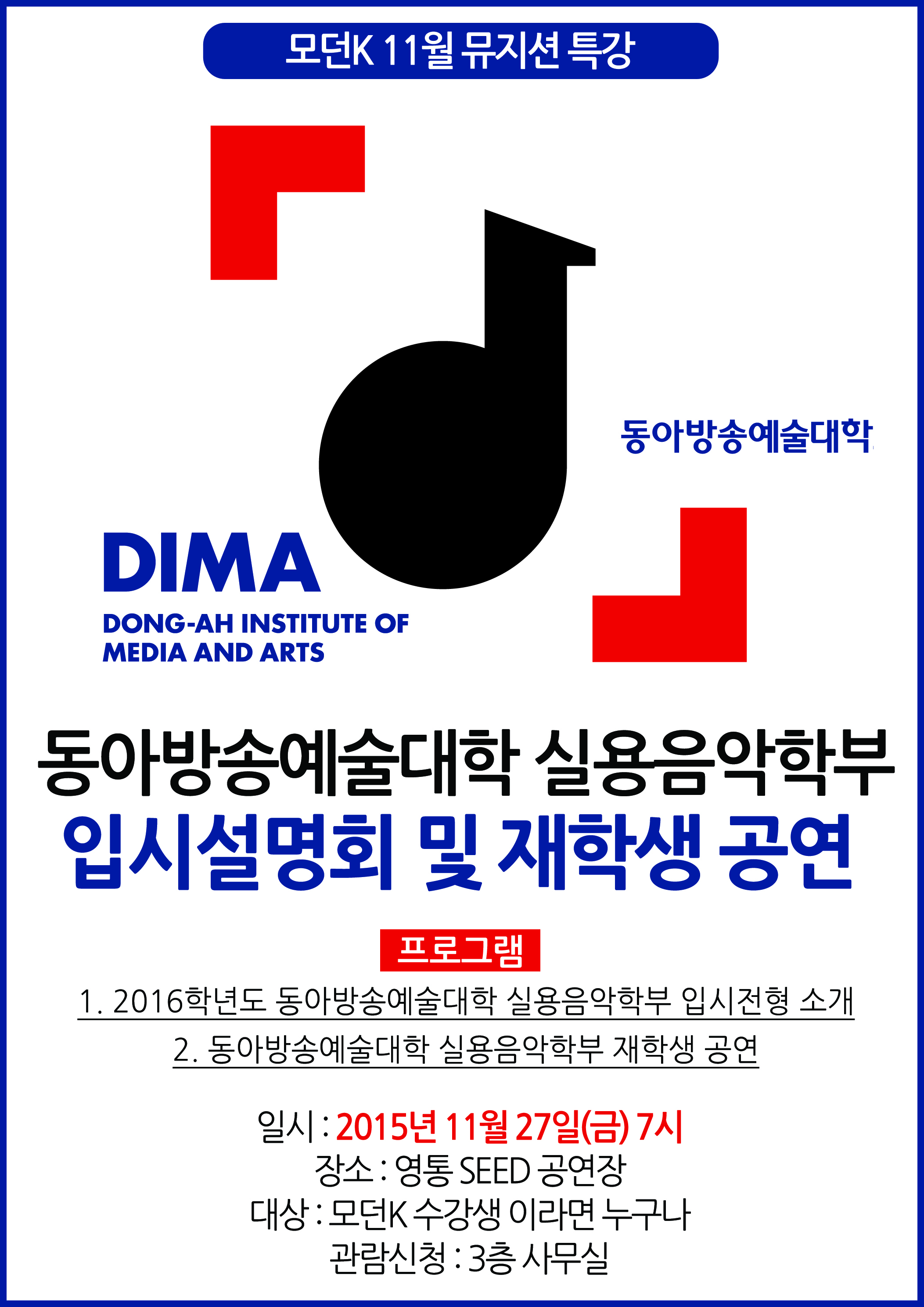 내용 : <1> 2016학년도 동아방송예술대학 실용음악학부 입시전형 소개
