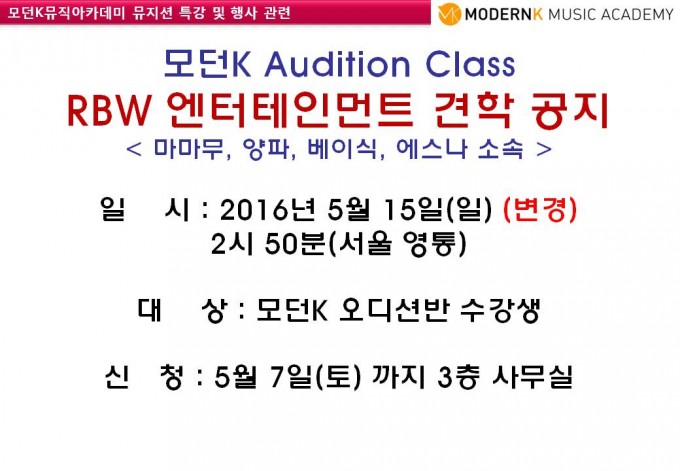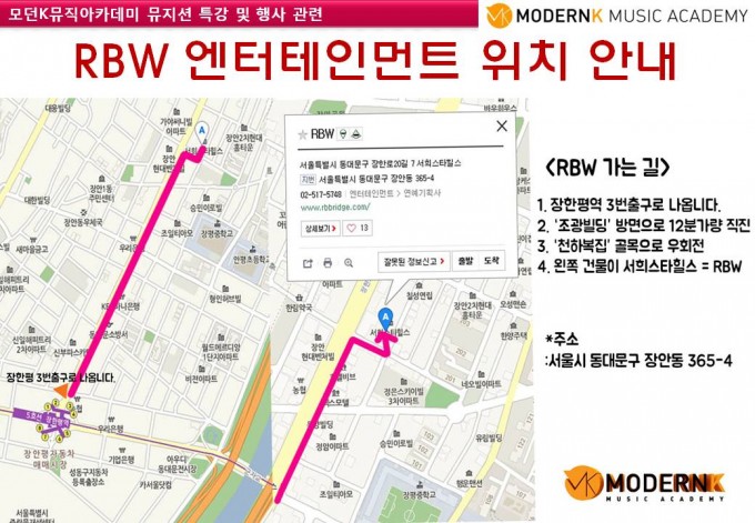 오디션반 RBW 견학 공지 및 약도