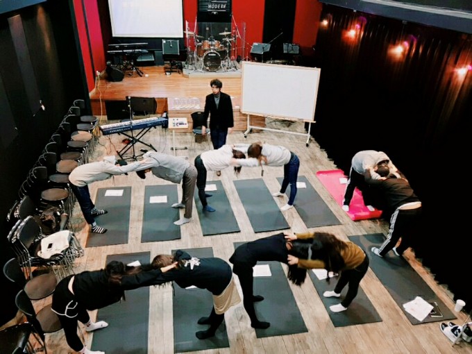 편한 복장으로 모인 기획매니지먼트 16기분들은 스트레칭, 호흡, 발성 등을 포함한 기본적인 지식을 배우는 시간이었습니다.