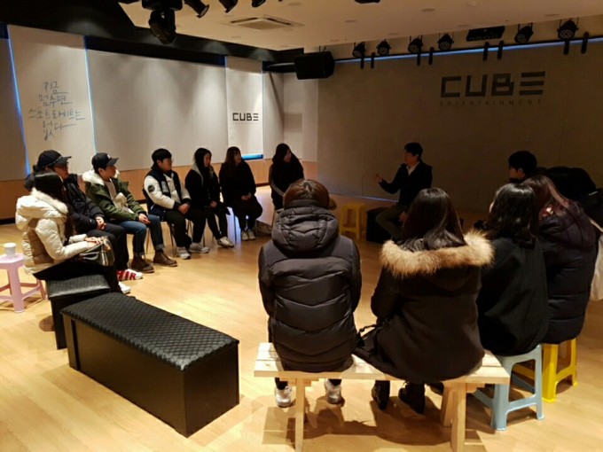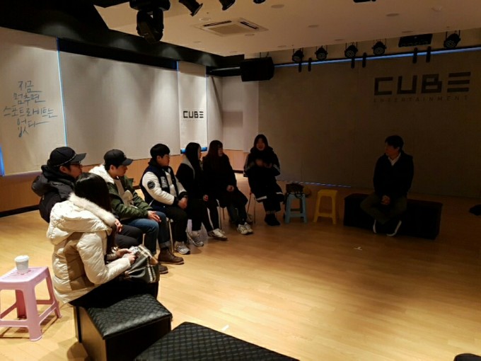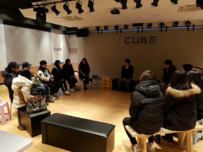 1월 둘째주에 엔터테인먼트 과정(기획매니지먼트, 프로작사) 16기 수강생 분들의 큐브엔터테인먼트 현장 방문 실습이 있었습니다.