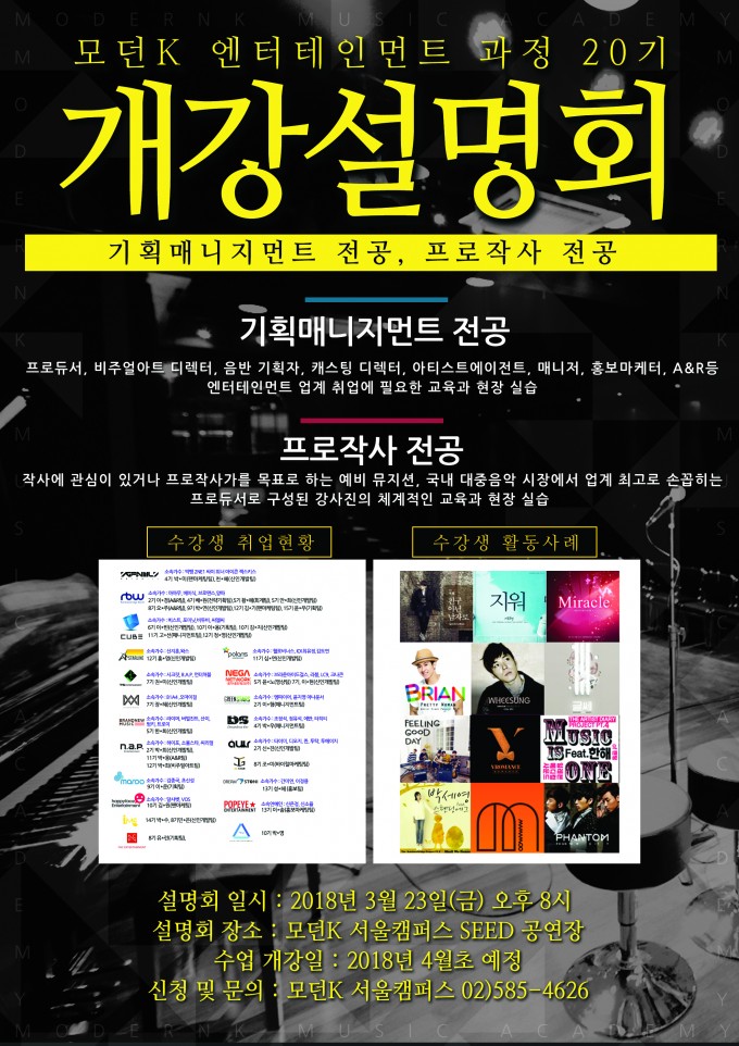 [모던K 기획매니지먼트] 모던K 엔터테인먼트 과정 20기 개강설명회 안내