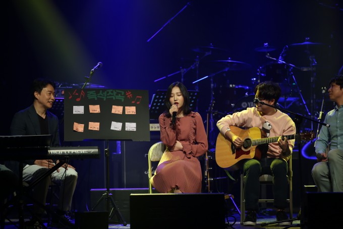 이층버스 맴버분들의 자작곡과 관객분들께서 입장시 적어주신 단어로 만든 <즉석작곡>, 드러머와 윤립양의 댄스,