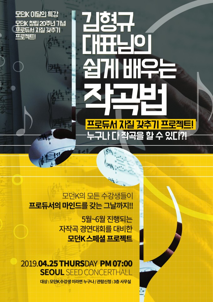 모던K 4월 이달의 특강으로 [김형규 대표님의 쉽게 하는 작곡법 특강] 이 진행되었습니다!