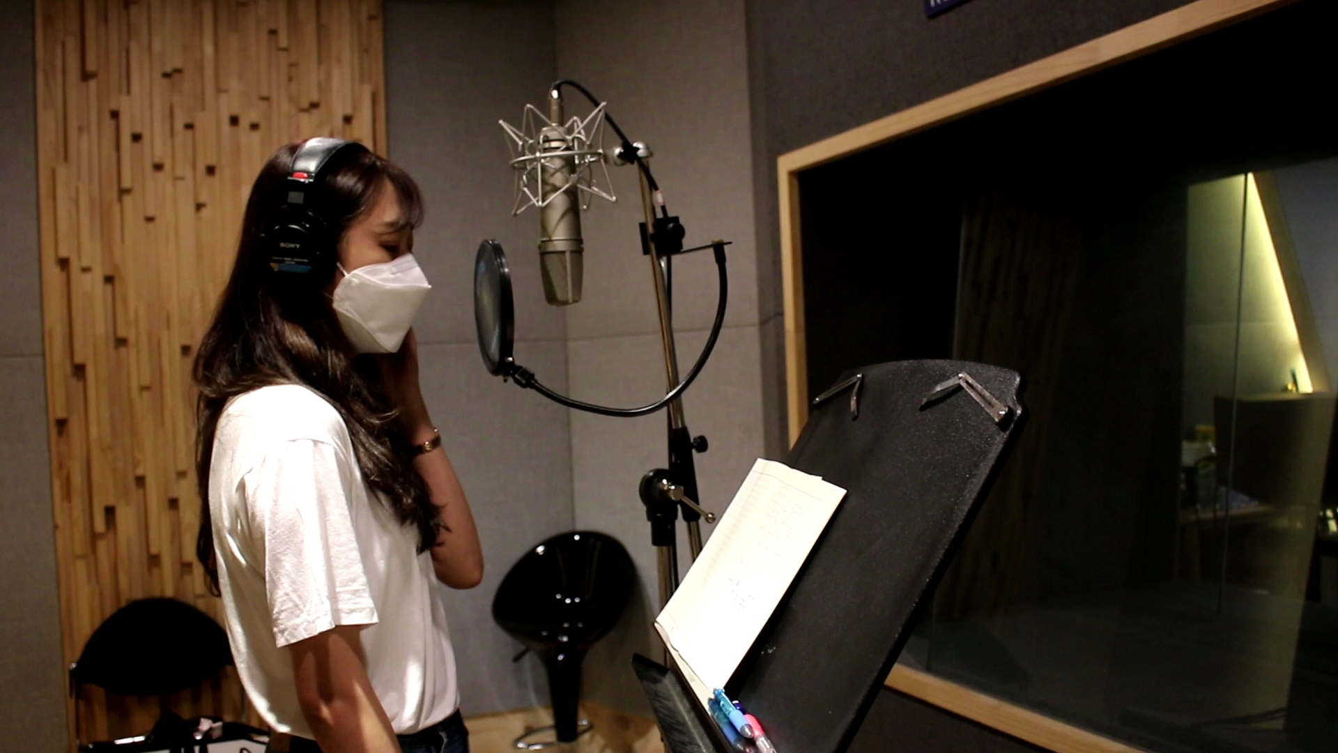 각자의 가사노트를 건내들고 녹음 부스에 들어가