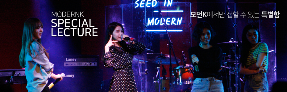 모던K에서는 국내 정상급 아티스트 분들을 초빙하여 오디션 상황, 힘들었던 연습생 시절, 데뷔과정, 현 위치까지의 일대기 그리고 뮤지션으로서의 자세 등을 인터뷰 형식과 공연을 곁들인 콘서트 형식의 조합으로 특강을 열고 있습니다. 이 자리를 통해 수강생들은 아티스트들과 조금 더 가까워지는 경험을 가질 수 있으며 뮤지션으로 가져야 할 마인드에 대해 충분히 학습할 수 있게 됩니다.