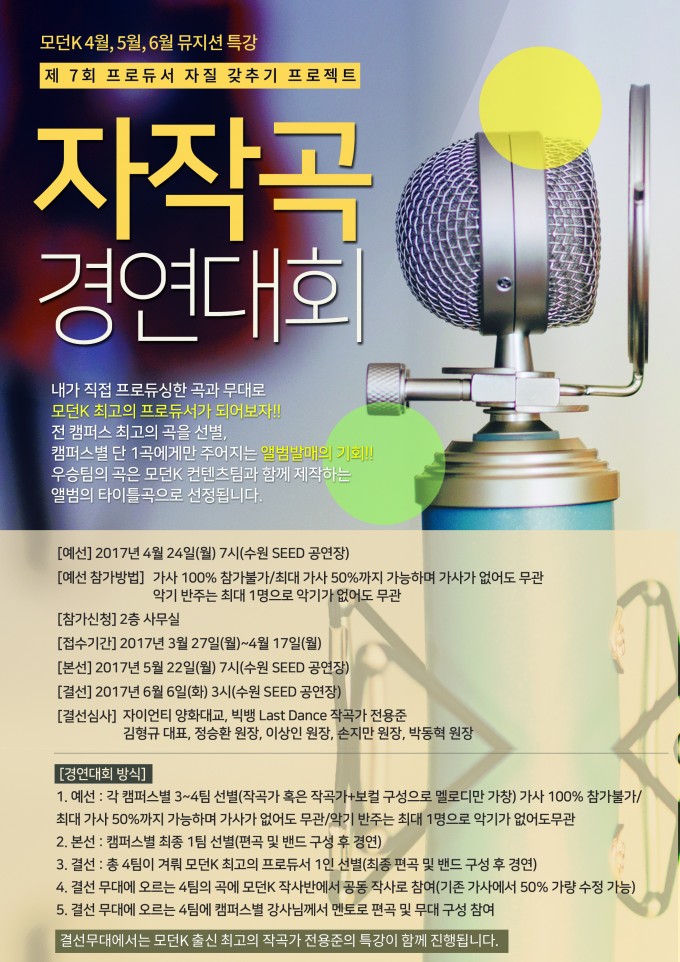 4. 결선 무대에 오르는 4팀의 곡에 모던K 작사반에서 공동 작사로 참여(기존 가사에서 50% 가량 수정 가능)