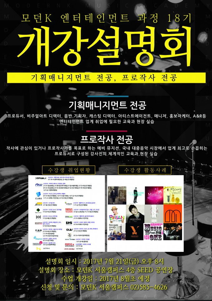 모던K 엔터테인먼트 과정 18기 개강 설명회
