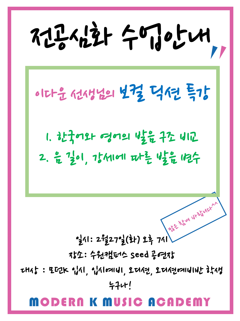 모던K 2월 전공심화 수업 안내 (수원캠퍼스)