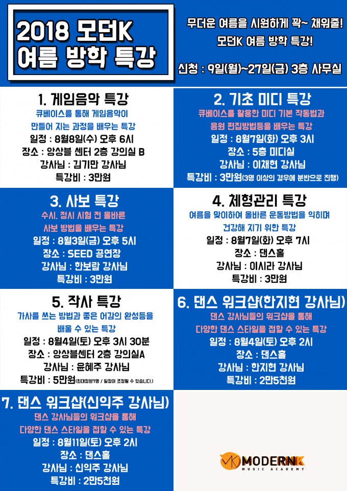 모던K의 특별한 여름방학 특강!! 모두 함께해요 ^^