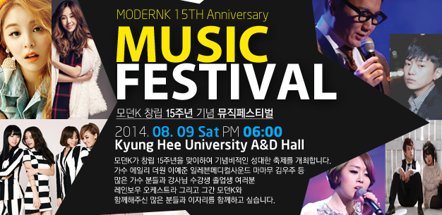 MODERN K 15th Anniversary MUSIC FESTIVAL 2014. 08. 09 Sat PM 06:00 Kyung Hee University A&D HALL