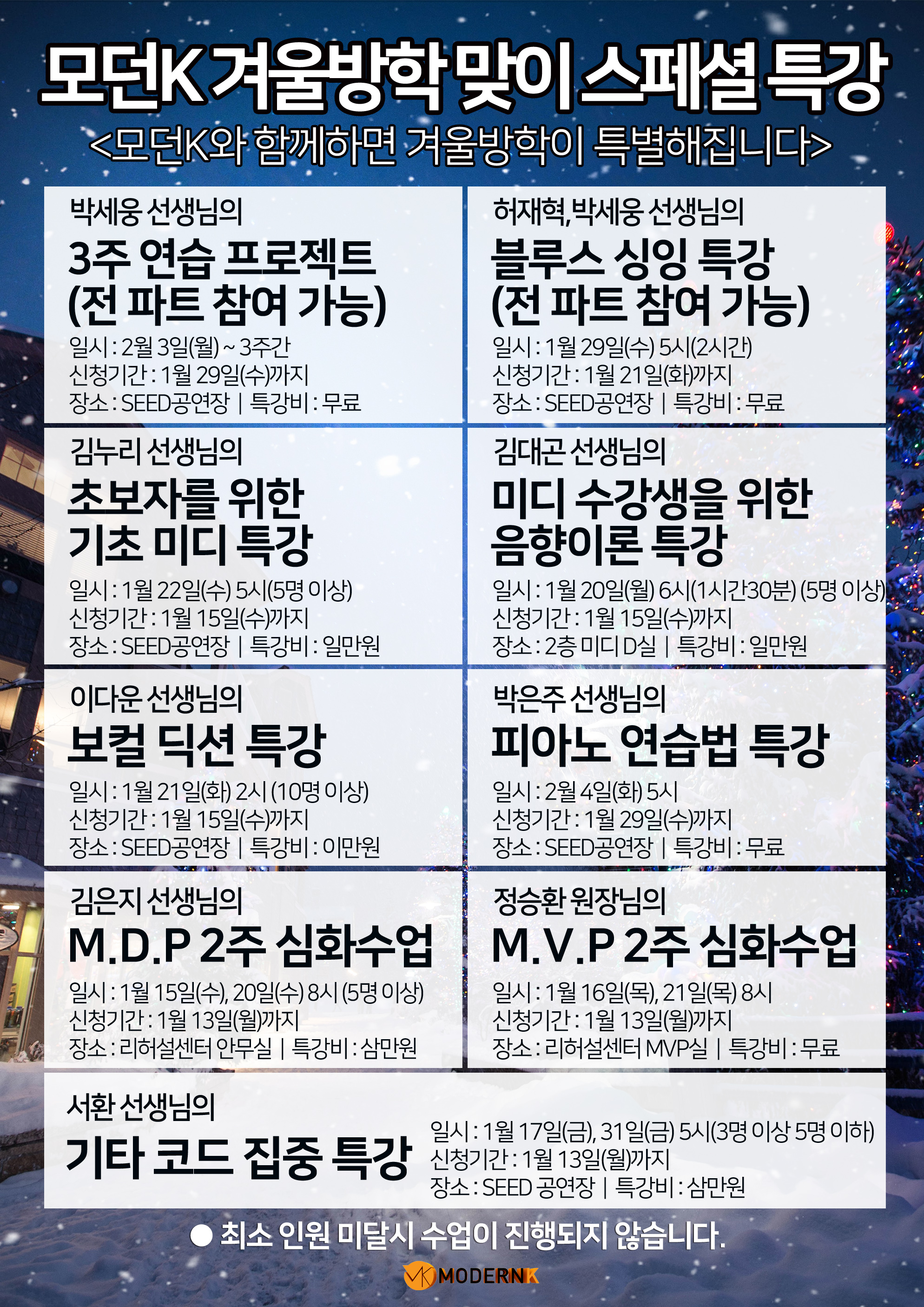 각 캠퍼스마다 진행되는 특강 일정 및 개설과목이 다르니 꼭 해당캠퍼스로 문의 주시기 바랍니다.