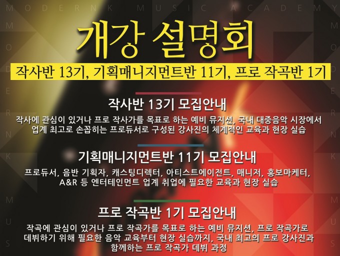 프로작곡반 1기 작사반 13기 기획매니지먼트반 11기 개강 설명회