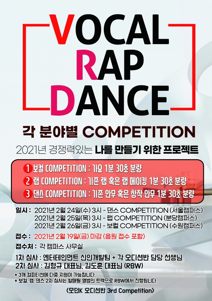 2021년 2월 26일(금) 3시 - 보컬 Competition (수원캠퍼스)