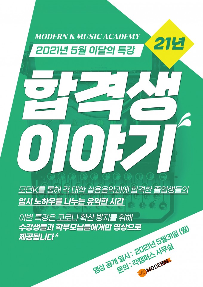 5월 이달의 특강은 2021년 5월 31일 (월) 모던K 공식 유튜브 채널에서 공개 됩니다.