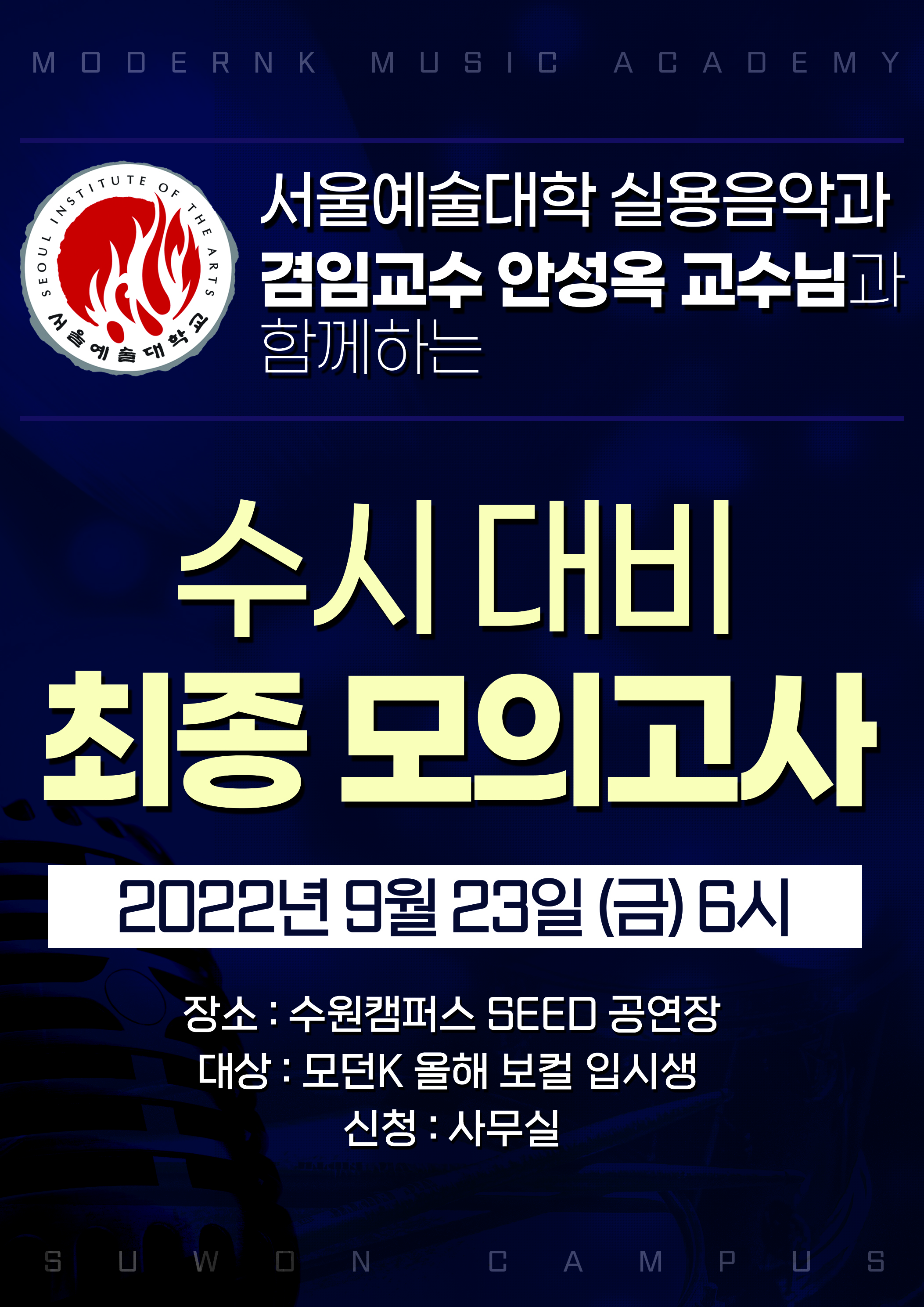 서울예대 실용음악과 겸임교수 안성옥 교수님과 함께하는 수시 대비 최종모의고사[서울][수원]