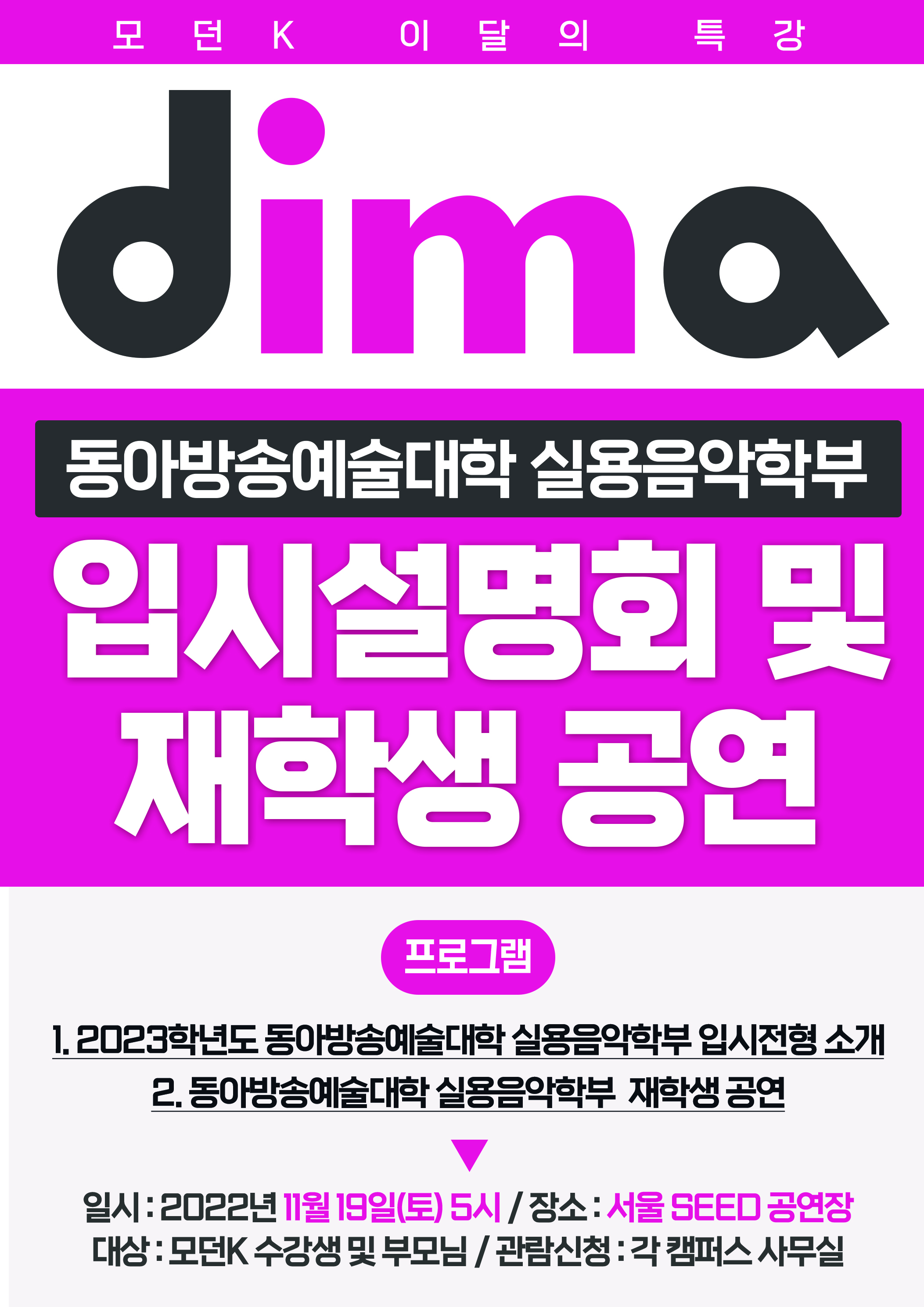 2023학년도 동아방송예술대 실용음악학부 입시설명회 및 재학생 공연[서울]