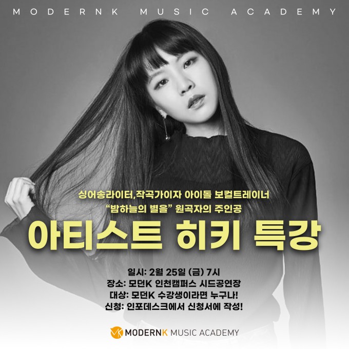 #모던K #모던K실용음악학원 #모던케이실용음악학원 #히키 #노누 #밤하늘의별을 #아티스트특강 #가수 #가수가되는법 #오디션합격 #가수특강 #노래 #보컬 #보컬입시 #실용음악학원 #아티스트특강
