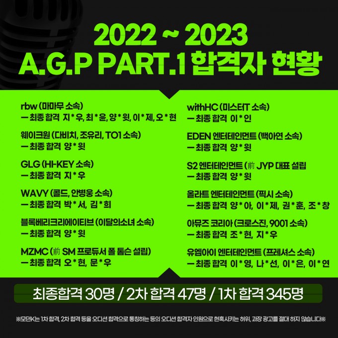 WAVY 최종합격 2명 / 뉴오더 최종합격 2명 / 비스킷 최종합격 1명 / S2 최종합격 3명 등