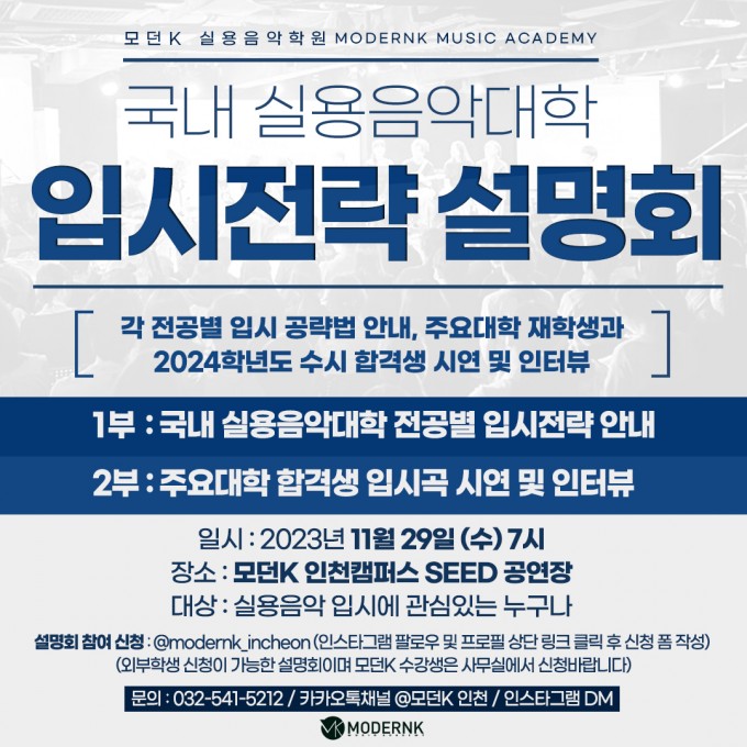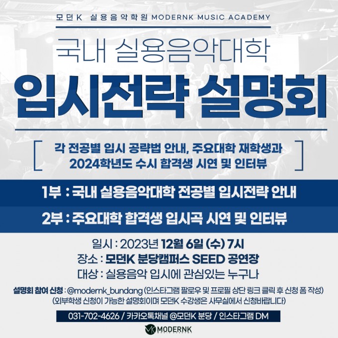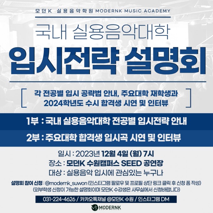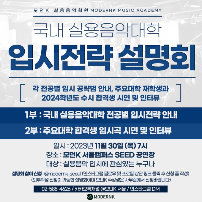 모던K 실용음악학원 국내 실용음악대학 입시전략 설명회
