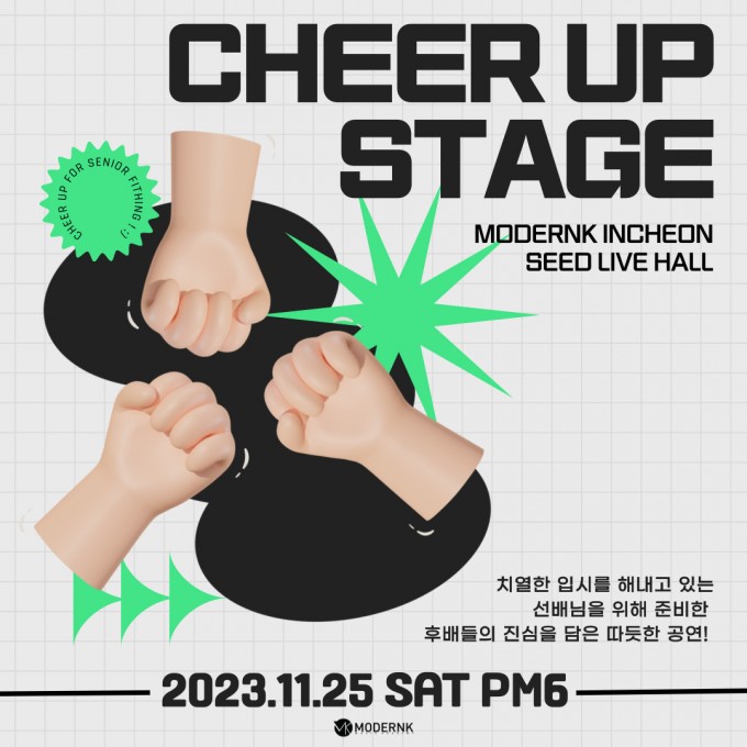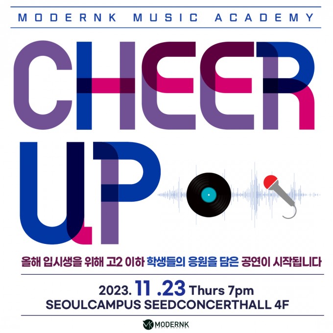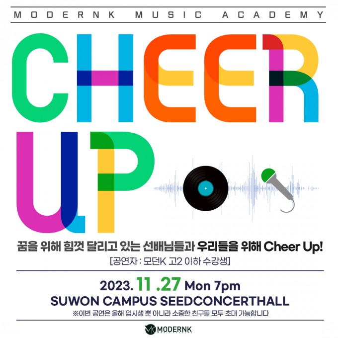 *이번 공연은 올해 입시생 뿐 아니라 소중한 친구들 모두 초대 가능합니다* ------------------------------------------------------------------------------------------------------------- MODERNK MUSIC ACADEMY CHEER UP