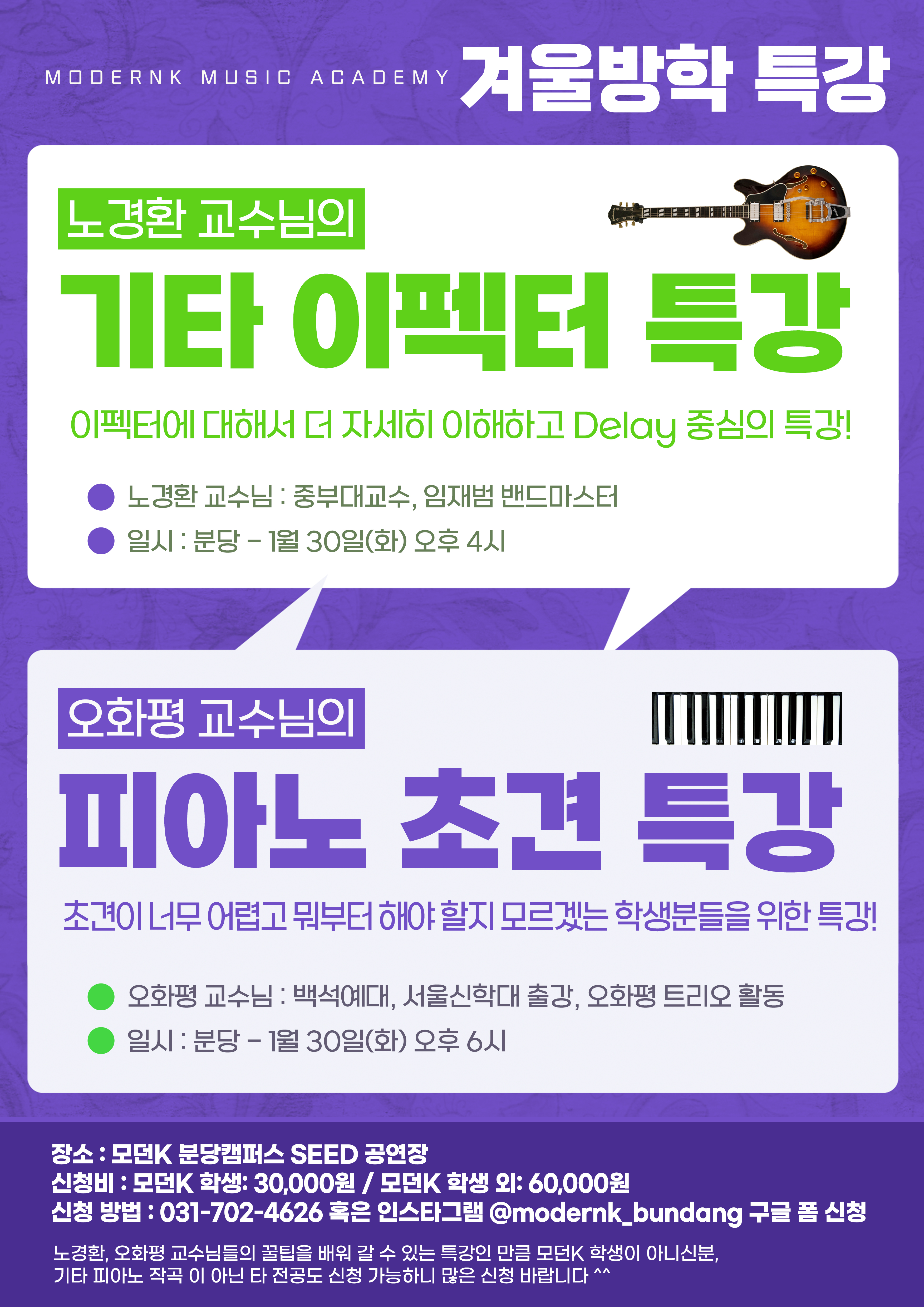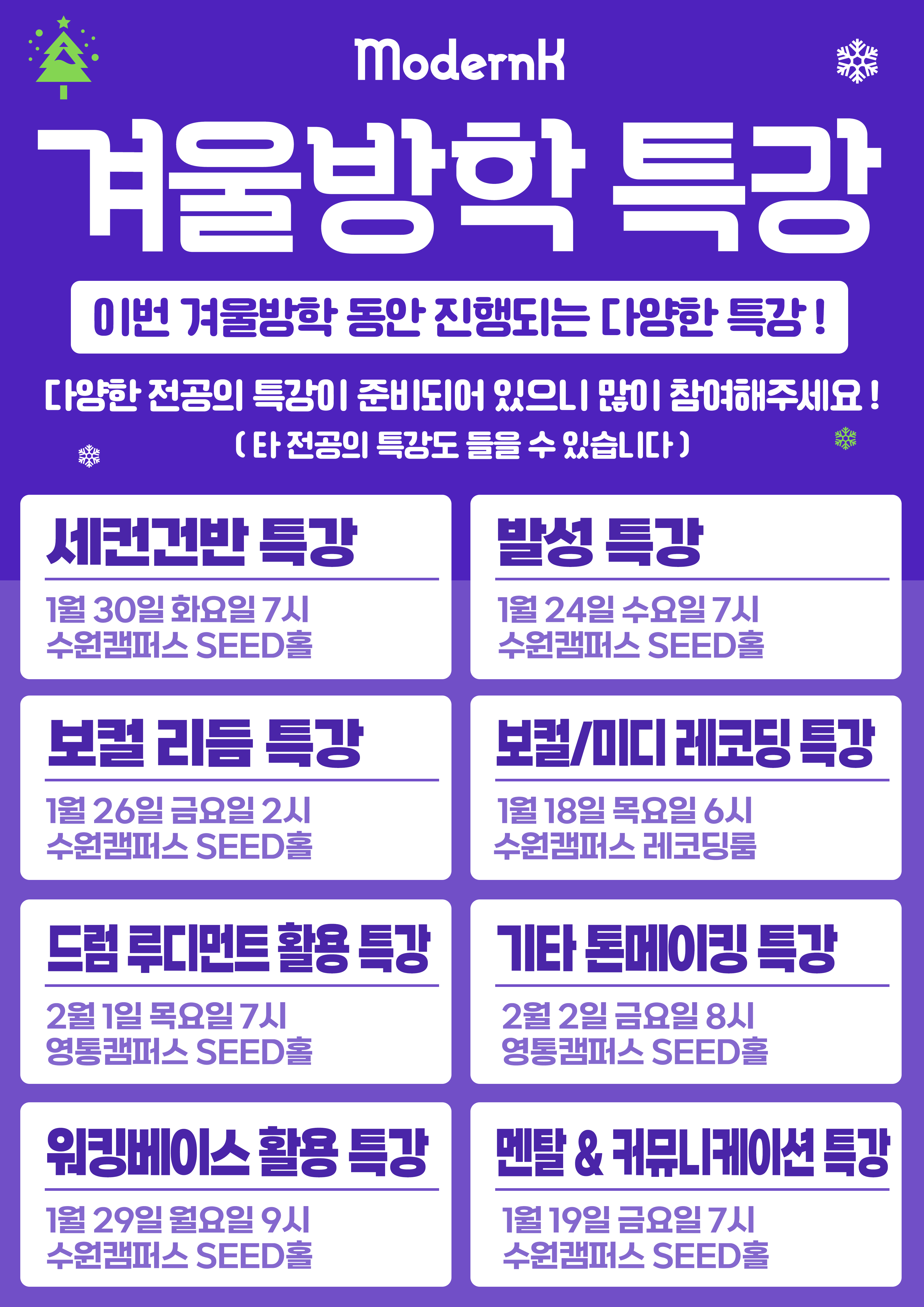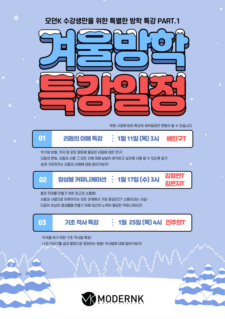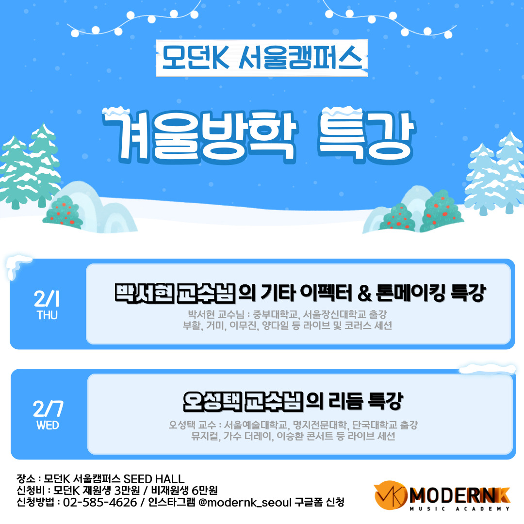 모던K 실용음악학원 겨울방학 특강 진행!!