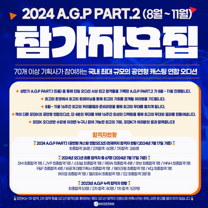 2024 A.G.P PART.2 [70개 이상 엔터테인먼트가 참여하는 국내 최대 규모의 공연형 캐스팅 연합오디션]