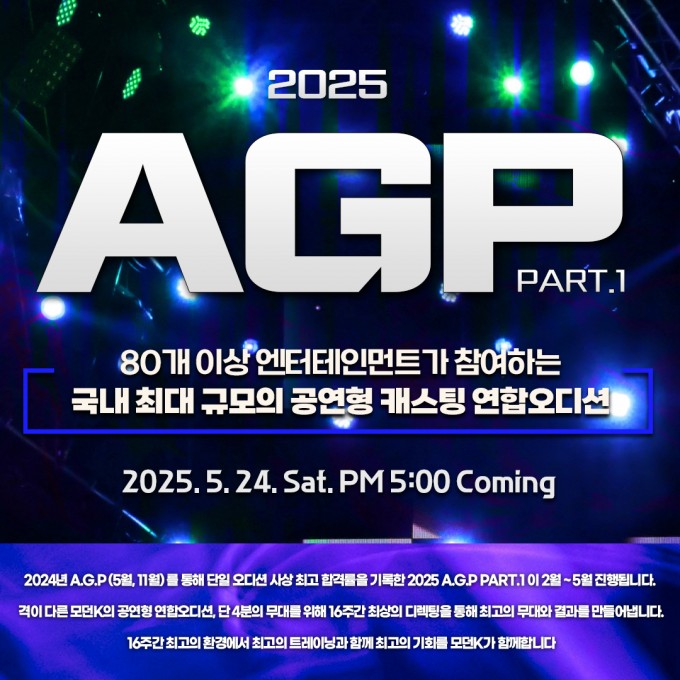 : 2024년 A.G.P (5월, 11월) 를 통해 단일 오디션 사상 최고 합격률을 기록한 2025 A.G.P PART.1 이 2월 ~ 5월 진행됩니다.