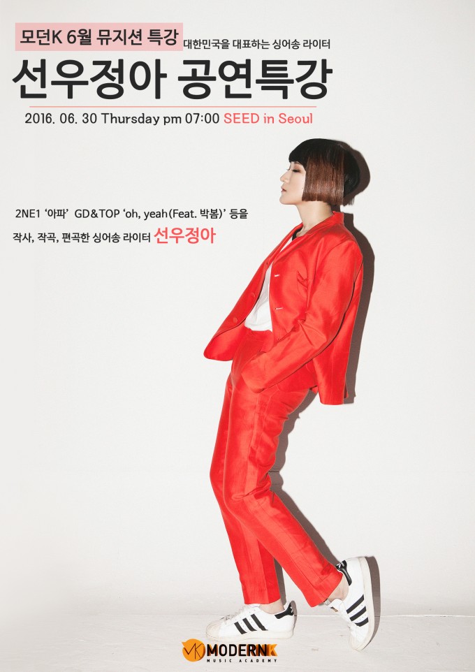대한민국을 대표하는 싱어송라이터 선우정아의 공연 특강이 모던K에서 진행됩니다 ^^